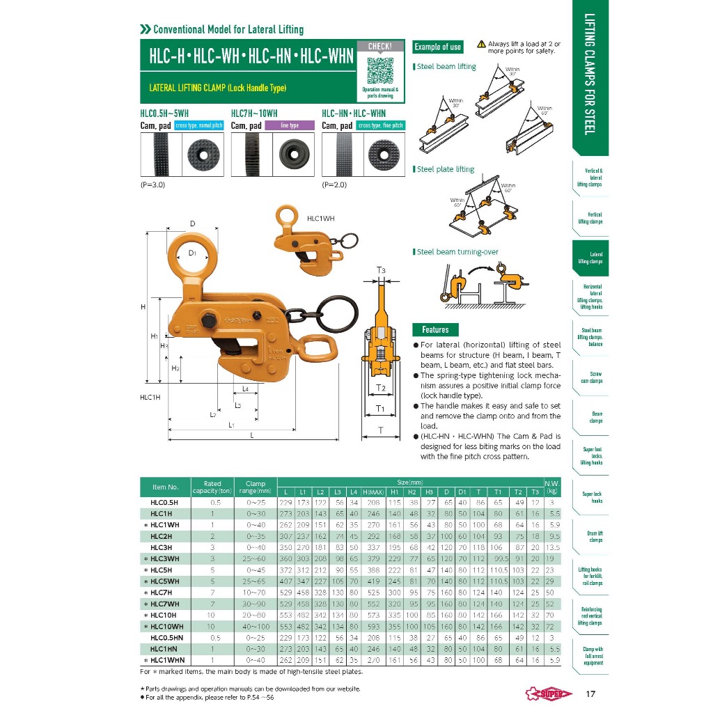 WIN五金 日本SUPER鋼板吊具HLC-H|橫吊鋼板夾|H型鋼吊夾|鋼板夾具|吊鋼板工具|0.5T 1T 2T