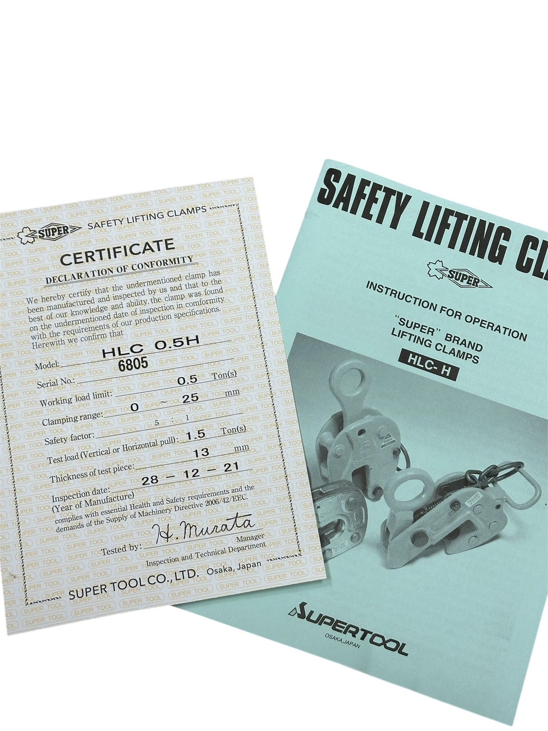 HLC-0.5H 夾持範圍:0-25mm 安全荷重:0.5T 本身重量:3.5公斤