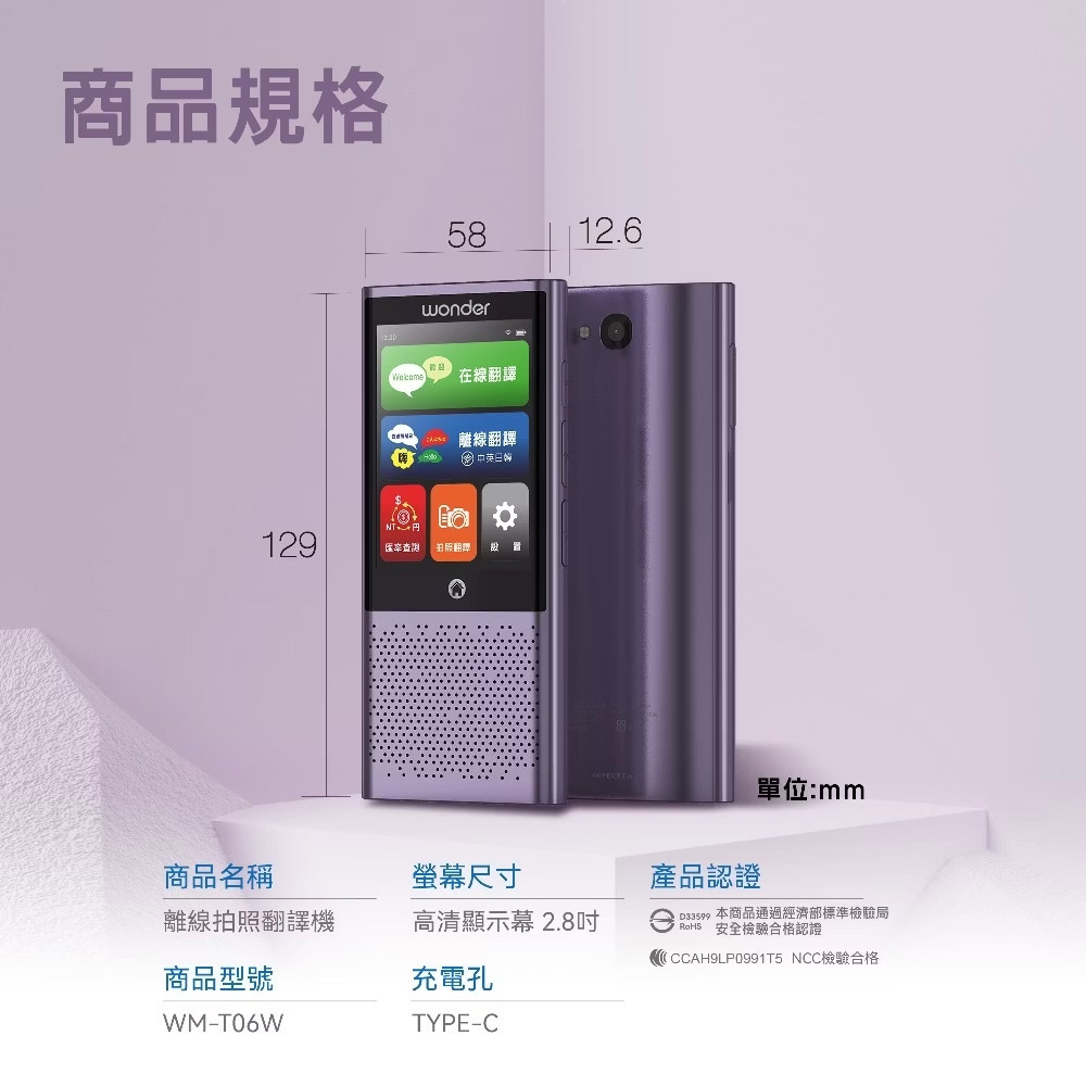 WONDER旺德 離線拍照語言翻譯機 /台 WM-T06W