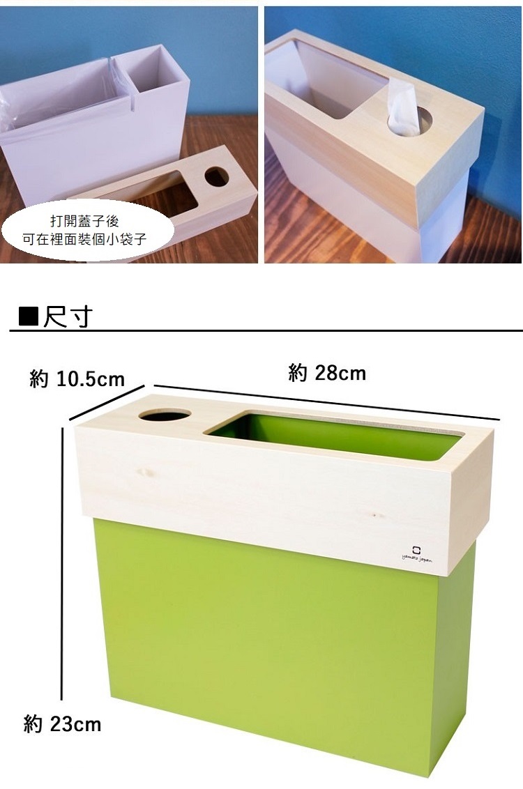 日本yamato japan|純手工木製多功能面紙盒式小型垃圾桶3.5L(矮)