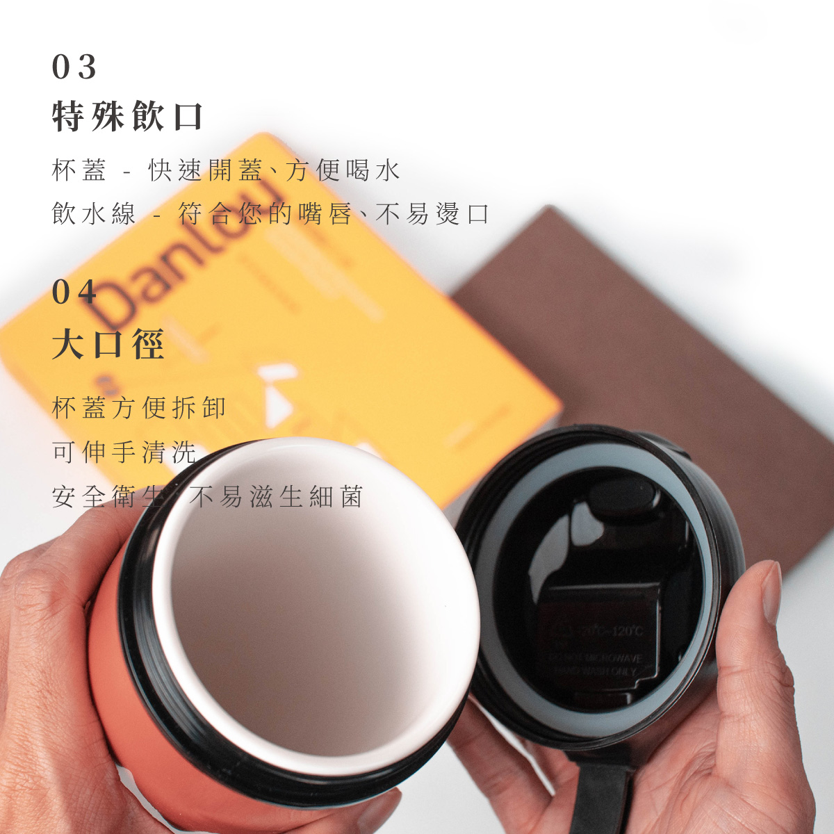 陶瓷內膽安全無毒,不殘留異味,想喝什麼都可以安心裝杯蓋食品級PP,放心安全,彈蓋式設計方便飲用杯口圓潤順滑,口感超好,不刮嘴提繩方便攜帶,走到哪暖到哪陶瓷保溫二小時,不釋放毒素重量:約395g產品尺寸 : 9x21.5x6 mm容量 : 560 ml顏色:黑/紅/藍/香檳以上規格依原廠提供資料為準,實際以出貨商品為準。📌因超商體積限制,超商取貨僅能寄送一個,超過一個請選擇宅配或是分開下單唷!(!!選擇超商請勿再下單其他商品!!若無法超商寄件會另外通知!!)