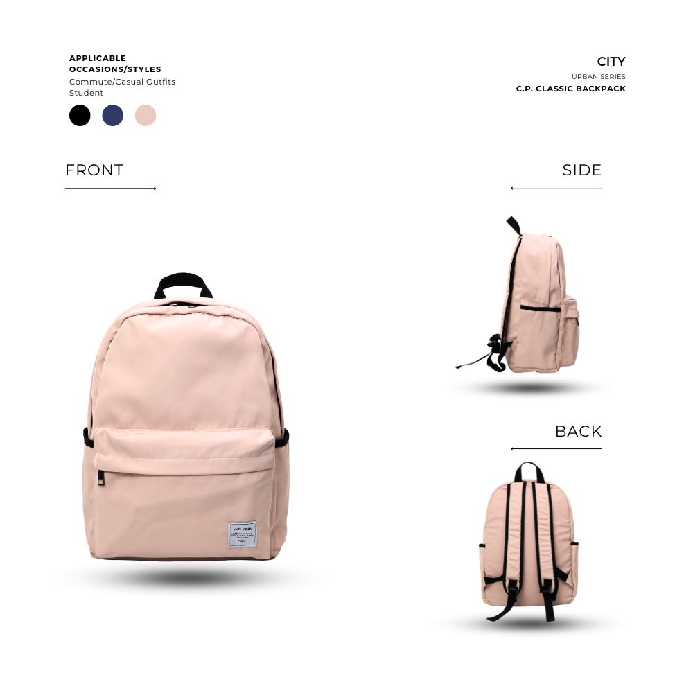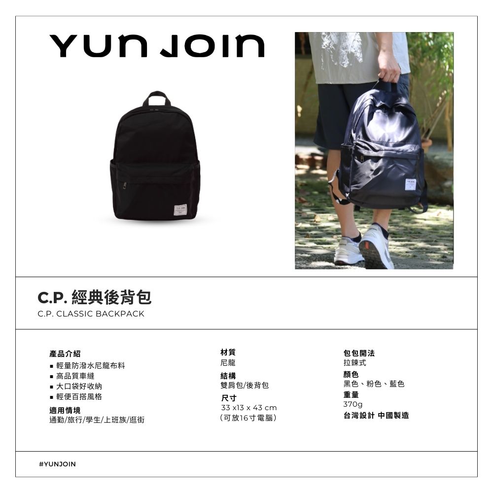 感謝各位蒞臨 YUNJOIN本商店 100 % 公司現貨且隨訂單開立電子發票政府合法營業登記店家,安全品質有保障。C.P. 經典;多種含意,由你決定!探索C.P.經典後背包,一款集實用與美感於一身的背包選擇。無論是校園生活(Campus-Pal)、都市通勤(City Pack)、學院風格(College Pack)還是休閒時光(Casual Pack),每種風格都能完美匹配。此外,C.P.還代表著情侶(Couple)間共同的品味和生活方式,以及優異的性價比(Cost–Performance ratio,CP值),每一次使用都能感受到其實用價值。【產品介紹】■ 簡單輕量設計■ 多格層收納■ 包邊高品質車縫■ 防潑水斜紋布料■ 滑順品質拉鍊■ 適合休閒、通勤、學生使用。【產品規格】材質:斜紋尼龍尺寸:33 x 13 x 43 cm (可放16寸筆電)重量:370 g結構:後背包顏色:黑色、藍色、粉色#後背包 #可愛背包#輕量 #防潑水 ##旅行 #休閒 #素面 #百搭 ──────────────────────────────────────────────────────【客服】線上快速諮詢有問題歡迎詢問,專人在線為您服務。若有任何問題或是收到商品時發現異常,可拍照片傳至聊聊客服人員上班時間會馬上為您處理。服務時間:週一至週五09:00~18:00