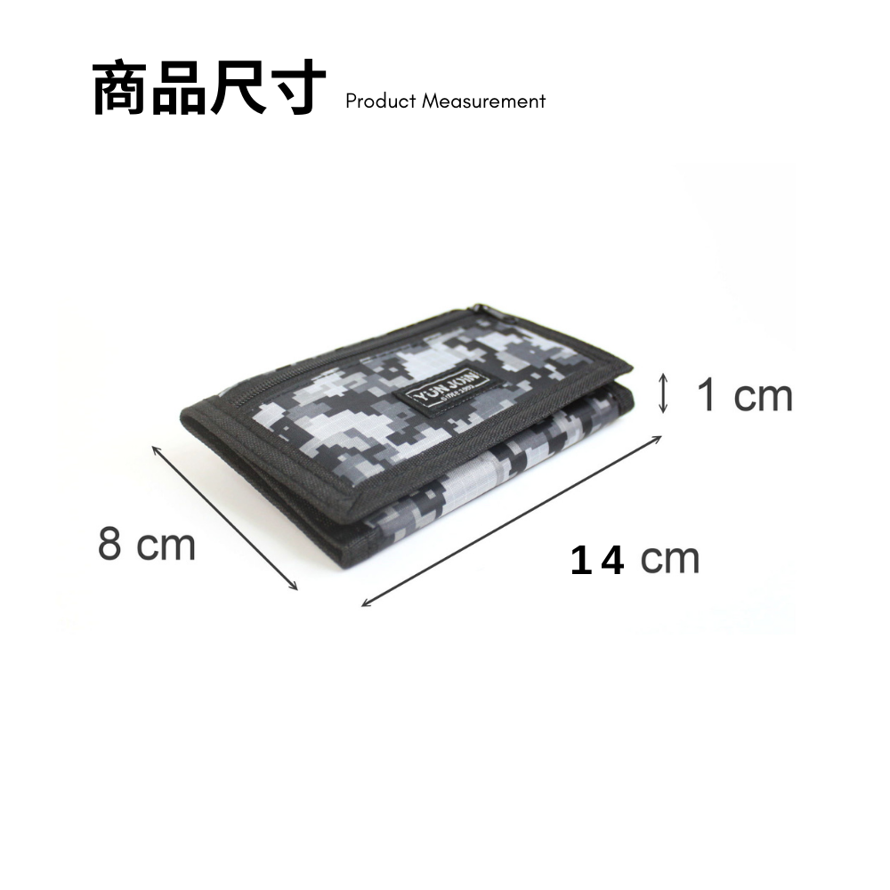 【產品介紹】YUN JOIN 迷彩三摺短夾活潑帥氣的設計適合學生年輕族群使用材質:尼龍布結構:三折式短夾顏色:林地迷彩、雪暴數位迷彩、黑色、林地數位迷彩(迷彩布為隨機裁切,所以每個商品紋路皆不同,是獨一無二的)#YUNJOIN #短夾 #皮夾 #男性 #中性 #布料 #聖誕節禮物 #尼龍 #潮流 #輕巧 #迷彩 #禮物