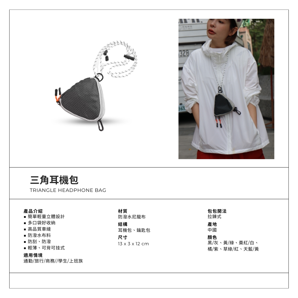 感謝各位蒞臨 YUNJOIN本賣場公司現貨供應且隨訂單由蝦皮代開立電子發票合法登記營業之店家,安全品質有保障。【產品介紹】材質:尼龍結構:耳機包、鑰匙包顏色:黑/灰、黃/綠、棗紅/白、橘/紫、草綠/紅、天藍/黃尺寸:13 * 12 *3 cm(注意:顏色因螢幕及攝影顯色會有些微差距) #YUNJOIN #旅行 #休閒 #潮流 #手拿包 #萬用包 #化妝包 #收納 #方便 #輕巧────────────────────────【客服】 線上快速諮詢有問題歡迎詢問,專人在線為您服務。若有任何問題或是收到商品時發現異常,可拍照片傳至聊聊客服人員上班時間會馬上為您處理。服務時間:週一至週五09:00~18:00