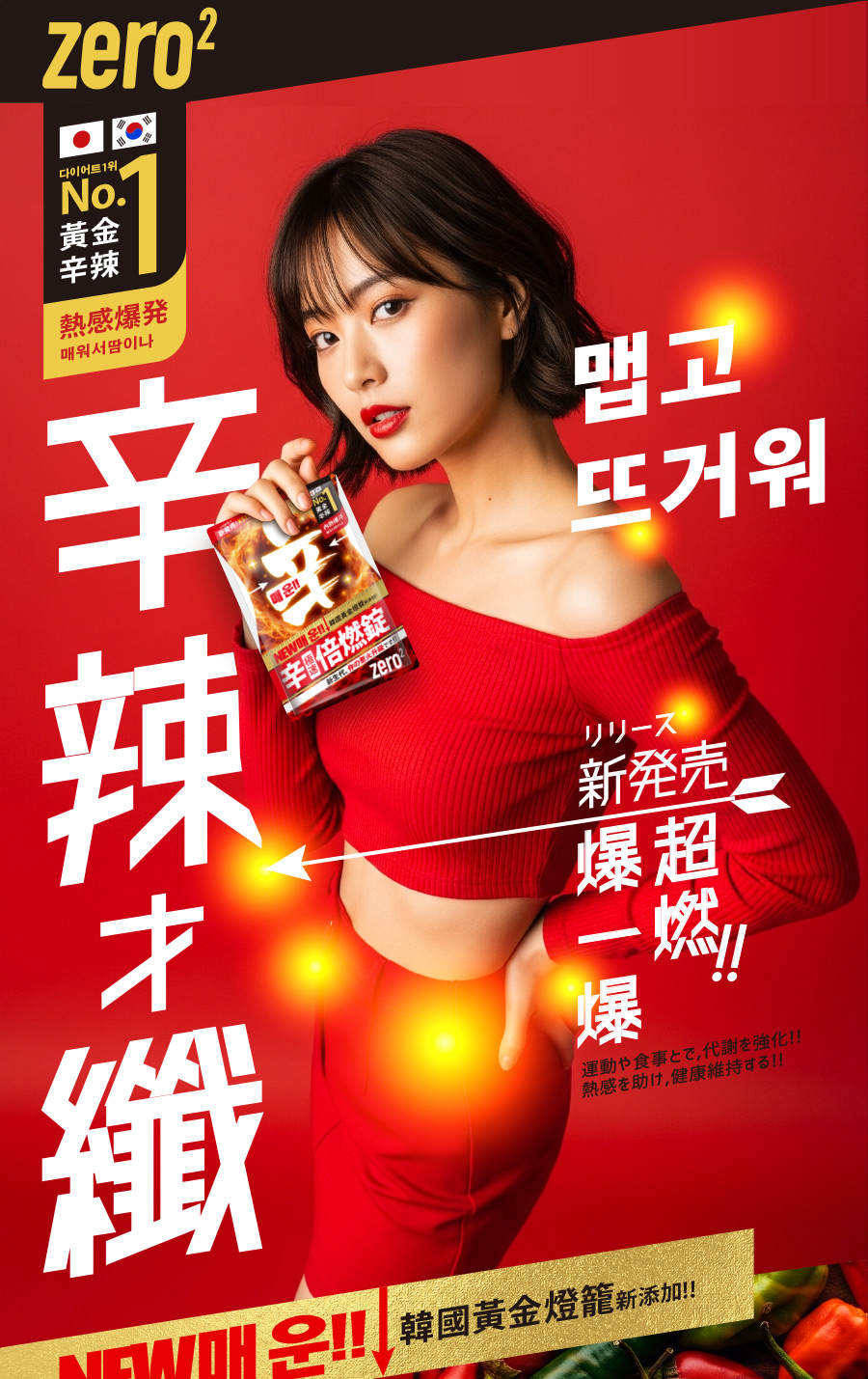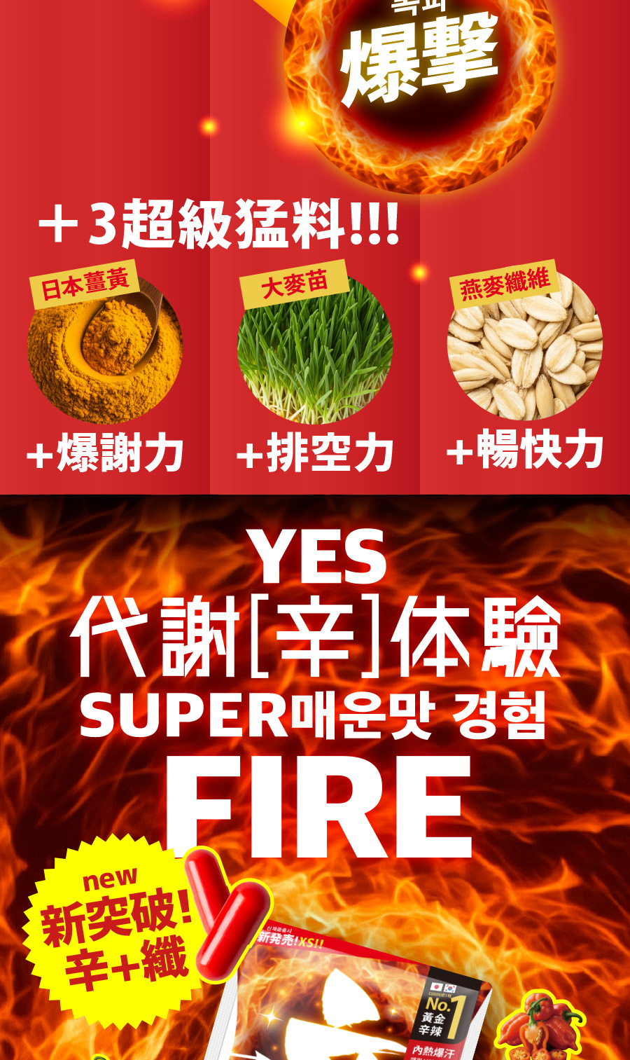 成分:韓國黃燈籠辣椒、天堂椒籽、辣椒萃取、綜合胺基酸、玉米來源可溶性纖維、燕麥纖維、薑黃