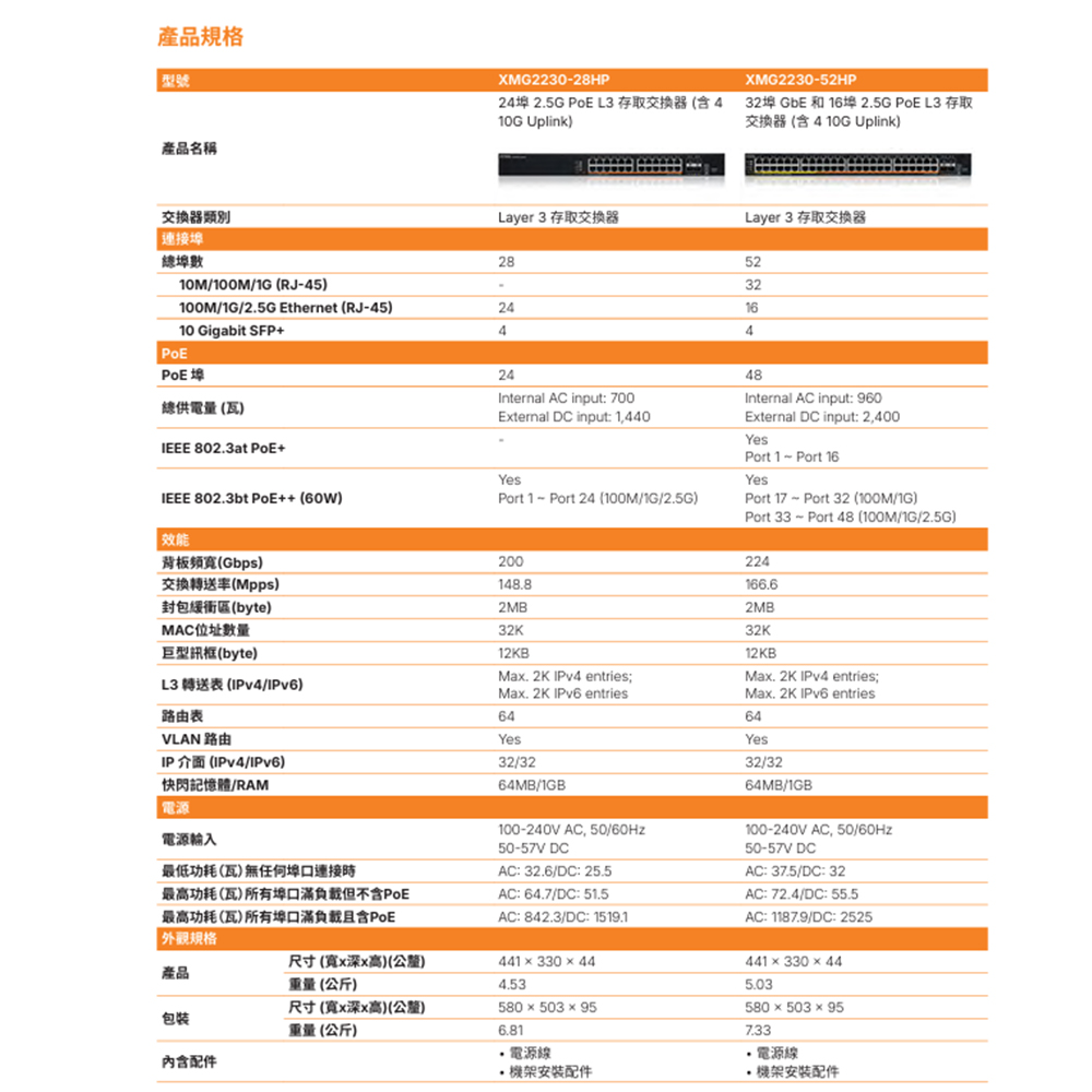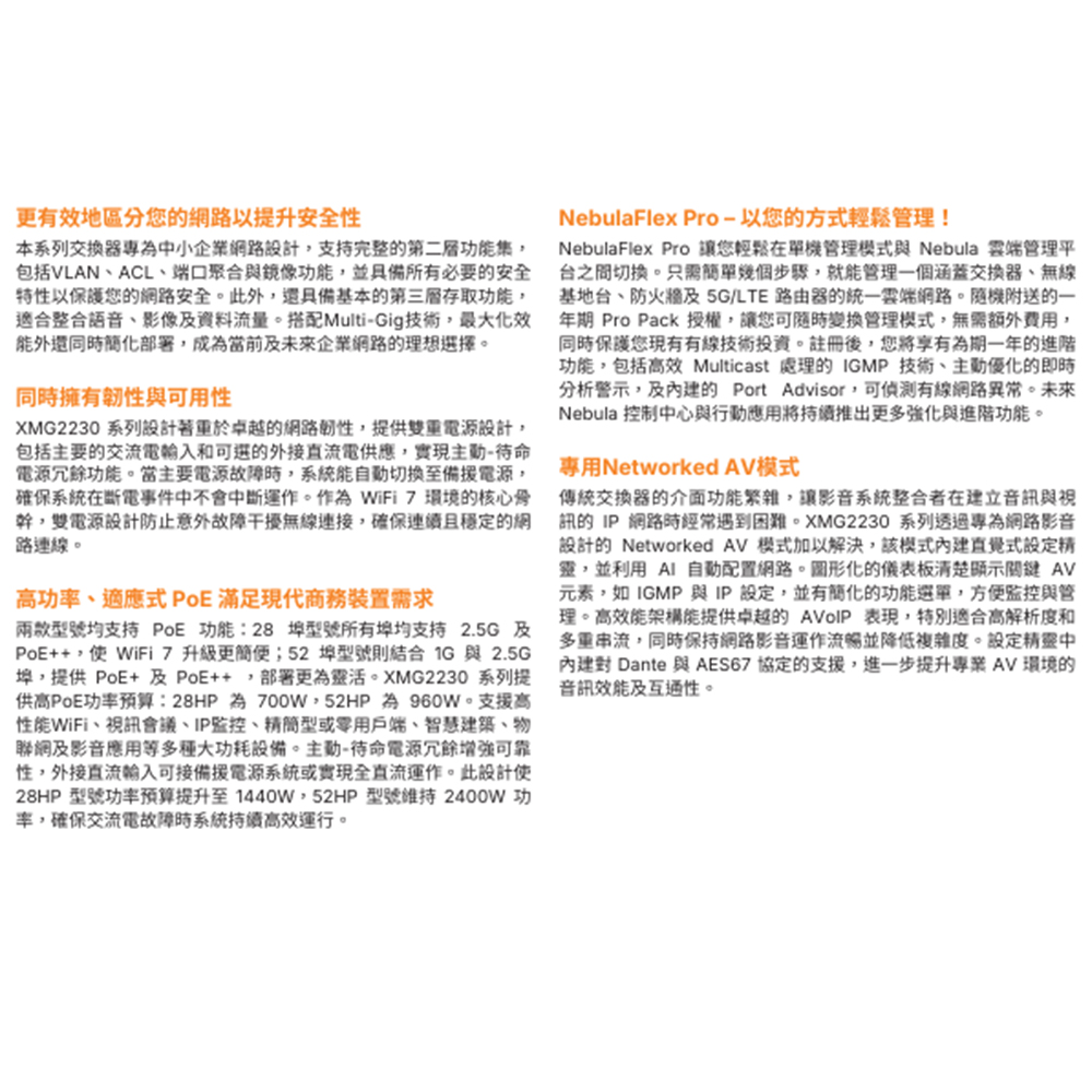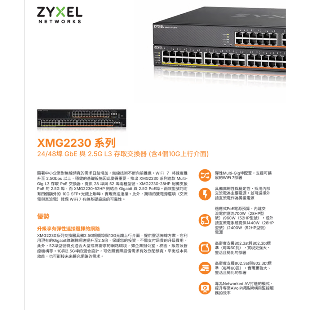 昌運監視器 ZYXEL合勤 XMG2230-52HP 32埠 GbE和16埠 2.5G PoE L3存取交換器