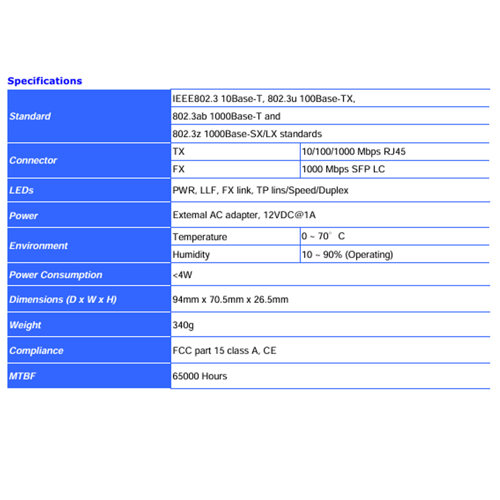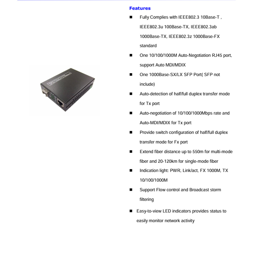 1個1000Base-SX/LX SFP介面(不含 SFP GBIC)