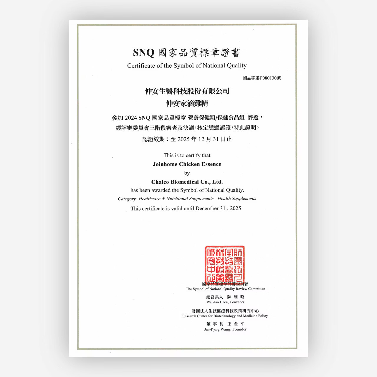 ⇨榮獲 SNQ 國家品質標章認證,國品字第P080130號