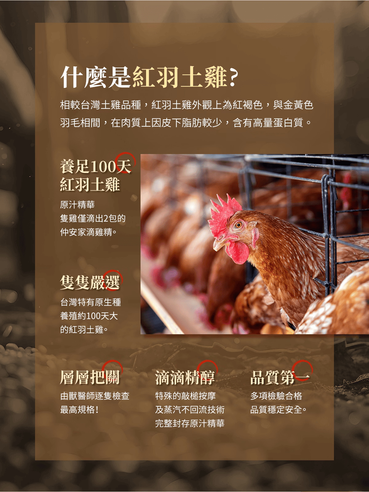 ⇨嚴選皮下脂肪少,蛋白質含量高的紅羽土雞,無抗生素、零膽固醇
