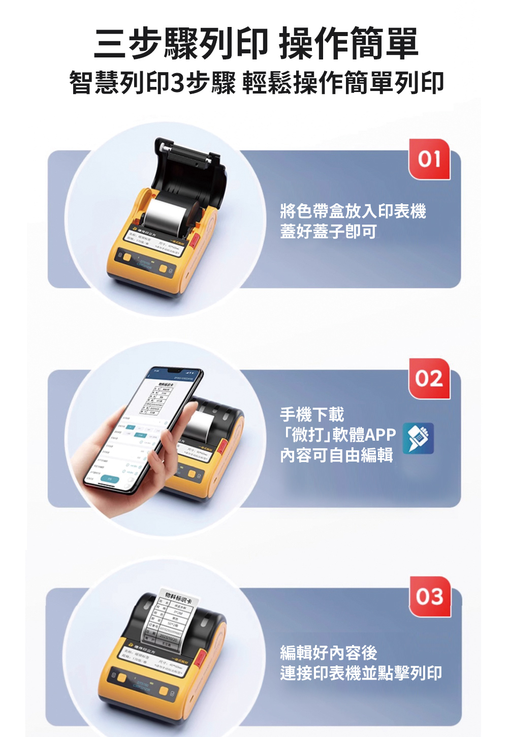 【德佟DETONGER】DT360S(203DPI) 熱轉印標籤機 藍芽標籤機 貼紙機 送硬殼包/40*30mm啞銀貼紙列印方式: 熱轉印尺寸:130*89*60mm(長x高)重量:390g裝紙寬度:40mm充電方式:Type-C 5V充電通訊方式:藍牙、USBNCC:CCAH24LPE172T2BSMI:R46620德佟原廠貼紙特點:防撕、防水、防油、防刮無雙酚A檢測通過商檢檢驗檢驗合格證書號碼:20203404126-00-6備註 : 不要使用快充頭充電,以免造成損壞