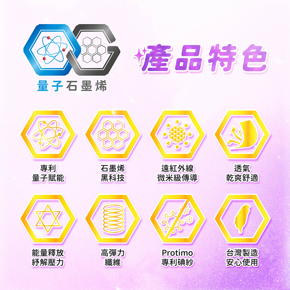 【商品特色】◉獨特量子植入技術放大石墨烯能量跟傳導力。◉石墨烯釋放低溫遠紅線光波,均勻傳導熱能,女性經期穿好舒服。◉腰頭加寬高壓設計,修身顯瘦。◉腹部採用9D立體蜂巢網狀織法,彈力包覆支撐。◉側腰倒V織法,貼合腰部曲線。◉大腿處3段式波浪紋加壓,修飾線條。◉小腿處3D立體蜂巢網狀織法,較能完整包覆、加強支撐。◉Protimo專利碘紗與竹炭紗完美結合,親膚舒適、透氣排汗。◉定位編織技術,平整不易外翻。【商品規格】◉材質:面紗 => 尼龍73% (內含石墨烯、抗菌紗)底紗 => 尼龍17%、彈性纖維10%◉顏色:黑◉保存期限:無◉產地:台灣【尺寸選擇 (單位公分)】◉一般:適合腰圍58-86 / 適合臀圍88-114 / 褲長82 ±5%◉加大:適合腰圍81-101 / 適合臀圍99-122 / 褲長:82 ±5%【洗滌方式】◉深色衣物初期下水洗滌時,有少許殘餘染料溶解於水中為正常現象,請與淺色衣服分開洗滌◉請使用中性洗劑柔性洗滌,水溫30度以下,避免長時間浸泡◉不可漂白、不可乾洗、不可烘乾、不可熨燙◉勿使用柔軟精,其成分會破壞抗菌纖維◉置於陰涼通風處晾乾,避免太陽曝曬【溫馨提醒】七天鑑賞期為猶豫期非試用期,商品須在完整、未使用,並且可以恢復原包裝的狀況下,才能進行退換貨。