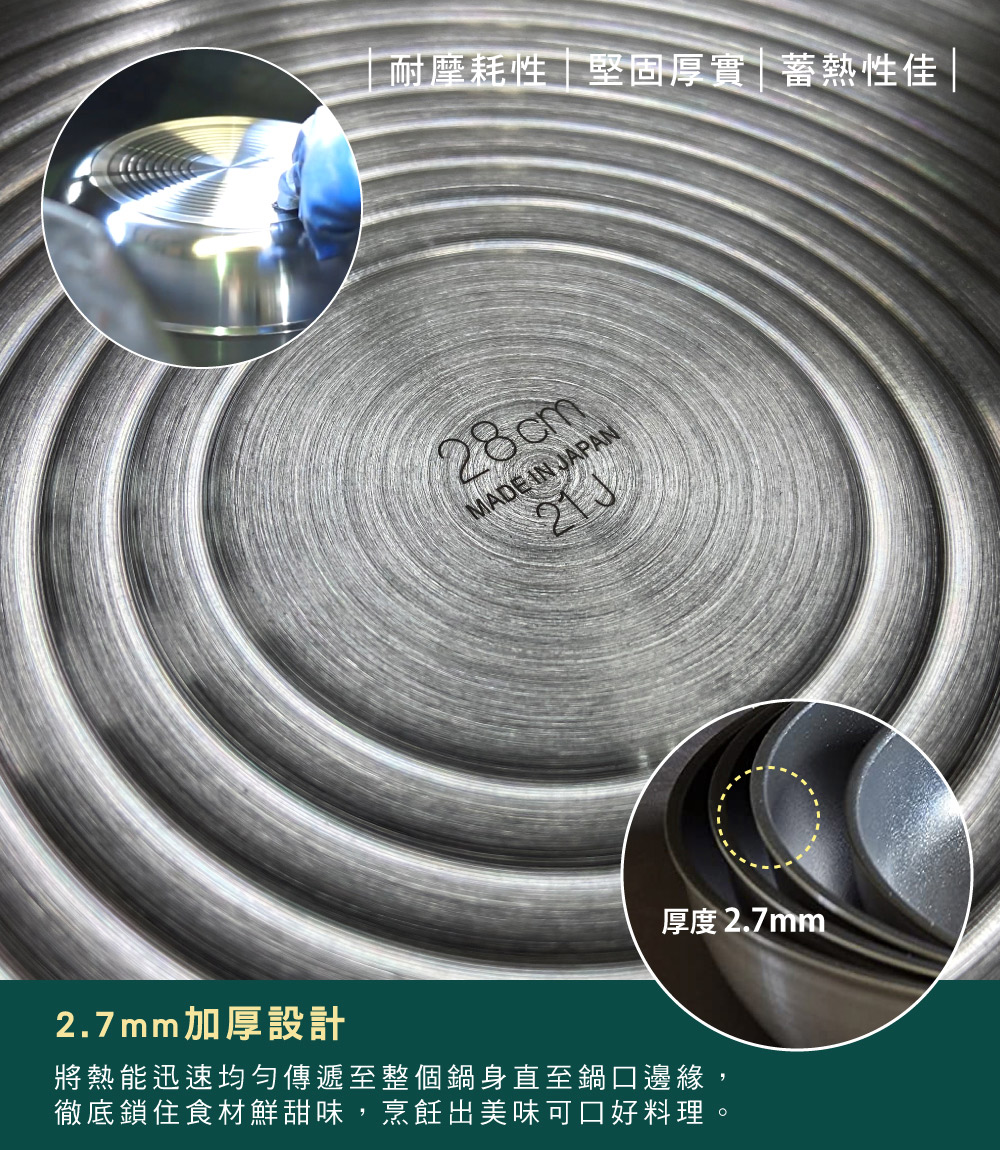 【技逸品】日本製不沾鍋平底鍋26cm(大金ES加工/鍋底部厚度2.7mm)
