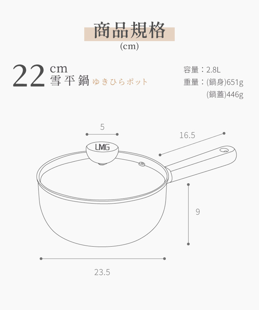 E3尖水果刀尺寸:刀長:15cmx3cm;柄長:9.7cm±5%重量:118公克±5%材質:不鏽鋼+三合鋼保固:1年保固,5年保用退貨限制 : 使用過不可退貨LMG錘紋不沾雪平鍋/附蓋 22cm材質:鋁合金、櫸木防燙手把+玻璃、麥飯石塗層22CM-直徑:22*高9*長38CM 重量:鍋686g+蓋465g產地:中國注意事項:1.鍋內不沾塗層,請使用木餐具或矽膠杓等,不要用鋼絲球清洗。2.使用時不可讓鍋具空燒,以免影響鍋具壽命。3.使用完畢,請先待鍋子冷卻,再進行清洗! 以免影響鍋子使用。4.手柄銜接處之開孔,為防止原木發霉之設計,並非瑕疵。