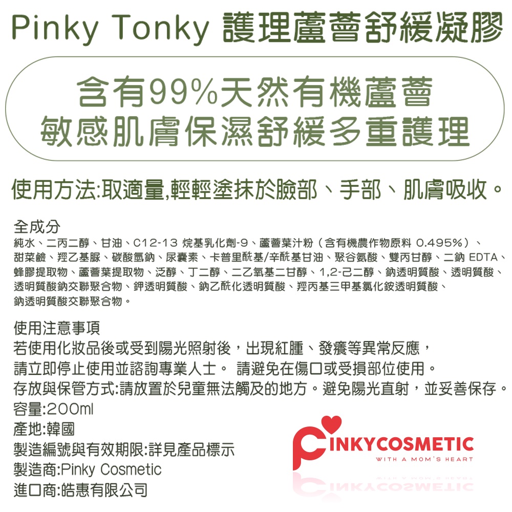 【韓國 Pinky Tonky】兒童蘆薈凝膠200ml