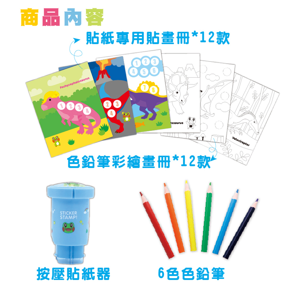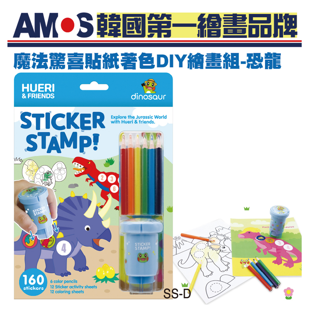 【韓國AMOS】魔法驚喜貼紙/著色/印章DIY繪畫組(恐龍)