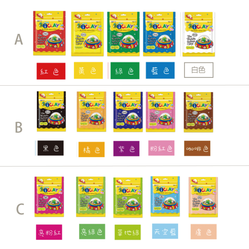 尺寸 / 9.5*14.5*1.7成分 / 聚乙烯☆咯烷酮 水 甘油 有機矽化合物 棕櫚酸鈉 硬脂酸鈉 肉荳蔻酸鈉 滑石粉(無石棉)著色劑 氯化十六烷基☆啶 辛酸甘油酯(詳如盒裝標示)重量(g) / 50gX5【韓國AMOS】50克袋裝超輕黏土 5色一組任選A.紅/黃/綠/藍/白 5色組B.黑/橘/紫/粉紅/咖啡 5色組C.亮粉/亮綠/膚色/草地綠/天空藍 5色組認證字號 標檢局印製 UC3 3688685~3690844保存期限(天) / 1825效期說明 / 以消費者收受日起算,至少具有效日期457日以上;即期商品的有效日期請參見商品資訊載記的「到期日」為主。