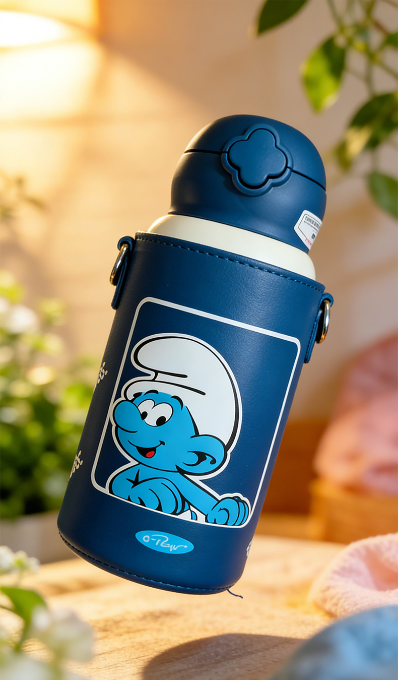 ❄秋冬必備!藍精靈聯名兒童保溫水壺,讓寶貝隨時喝上溫暖好水❄長效保溫|316醫療級鋼|一鍵啟飲|防漏耐摔你是不是也煩惱——寶貝上學水放涼?外出喝水漏得到處都是?材質不安全不放心?別再妥協了!這款「藍精靈聯名四葉草兒童保溫水壺」就是媽媽們的安心之選!✅ 雙層真空,長效鎖溫鎖涼👉 升級真空工藝:630ml大容量,保溫長達12小時、保冷24小時,秋冬喝熱奶,夏天喝冰飲,四季都適用。👉 多層鎖溫結構:外殼防燙,內膽保溫,寶貝捧在手心不燙手,戶外玩耍也能喝到溫度剛好的水。✅ 一鍵啟飲,暢飲不費力👉 四葉草按壓設計:萌趣造型,寶貝小手輕按即開,搭配柔軟硅膠吸管,吸吮省力,不傷寶貝牙齦。👉 防嗆防漏細節:吸管帶防嗆閥,倒置搖晃也不漏水,書包、露營包隨便放,不怕弄濕書本和衣物。✅ 316醫療級鋼,安全守護成長👉 食品級內膽材質:採用316醫療級不鏽鋼,耐腐蝕、不易生銹,裝奶、裝湯、裝果汁都安心,無異味不串味。👉 可拆卸易清洗:杯蓋、吸管、密封圈全可拆卸,無清潔死角,避免細菌滋生,媽媽清洗更省心。✅ 正版聯名,耐摔又好看👉 藍精靈萌趣設計:正版授權圖案,3D立體花膜工藝,色彩鮮豔不易掉漆,寶貝愛不釋手,主動喝水不磨蹭。👉 堅固耐摔材質:外殼選用加厚耐摔材質,搭配專屬防護杯套,戶外跑跳、校園磕碰都不怕,耐用度拉滿。 ✅ 便攜百搭,多場景適用👉 加寬肩帶杯套:可調節肩帶,輕便不壓肩,寶貝背著上學、遊玩超輕鬆,也能手提攜帶。👉 一壺多用:搭配替換杯蓋,吸管杯、直飲杯隨意切換,滿足寶貝不同年齡、不同場景的飲水需求。✅ 品名:藍精靈聯名四葉草兒童保溫水壺✅ 容量:630ml✅ 材質:內膽316不鏽鋼、外殼食品級PP、杯套耐磨皮革✅ 顏色:經典藍白(藍精靈聯名款)產地:PRC(韓國監製)