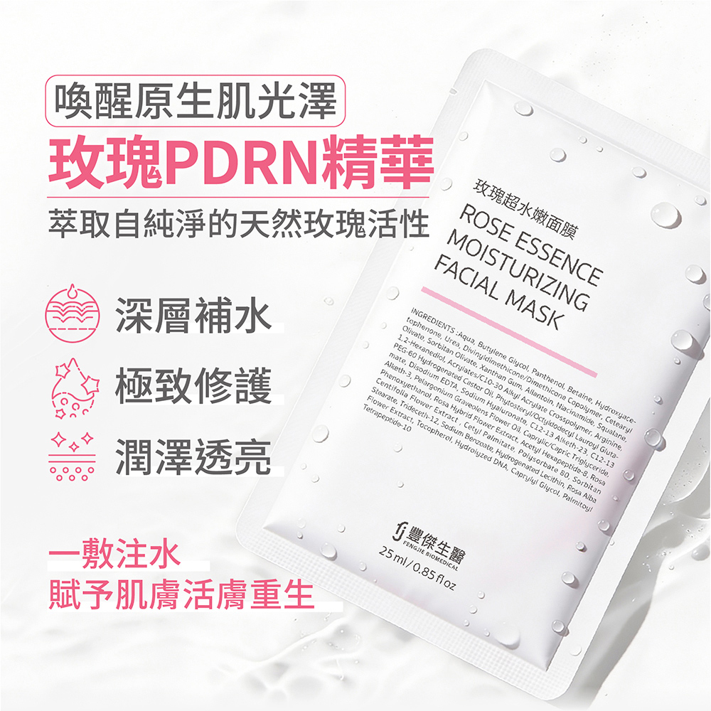 【FJ豐傑生醫】玫瑰超水嫩面膜-5片/盒(緊緻鎖水x亮白肌膚)