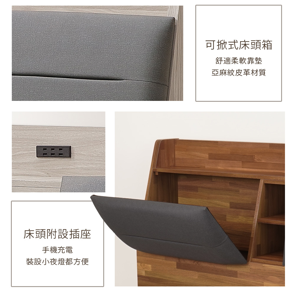 ◆同款二款色調,搭配居家風格◆工業積層木色調風格◆可掀式床頭箱輕鬆收納◆安心配送,由專人到府組裝◆實用便利插座孔設計◆床頭箱+抽屜床組合整組配件:床頭箱 x 1 + 抽屜床 x 1尺寸:寬 156 x 深 221 x 高 101 公分適用床墊:5 x 6.2 尺材質:高級木心板顏色:積層木色 產地:台灣誤差值:因人工丈量,尺寸±5%內為正常範圍