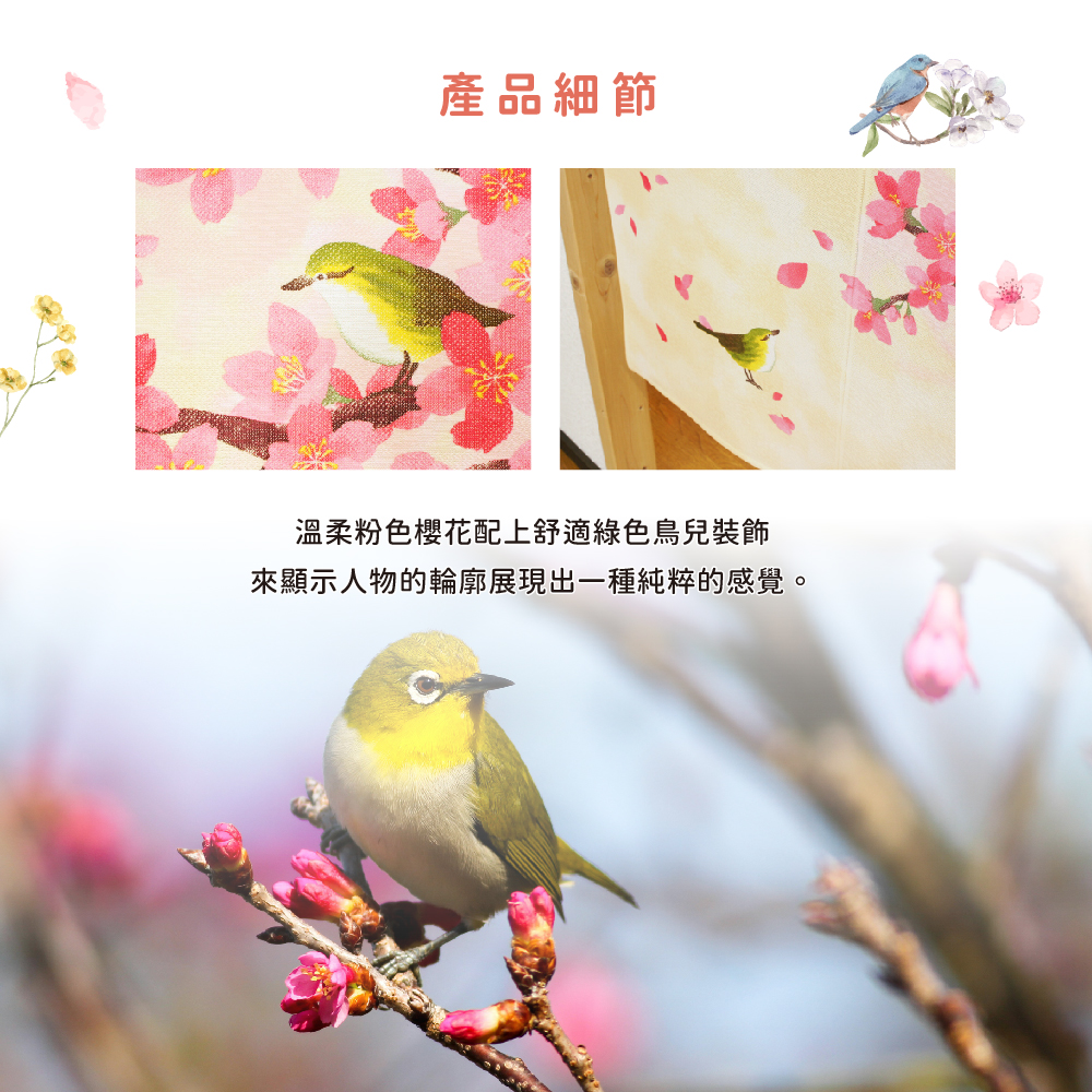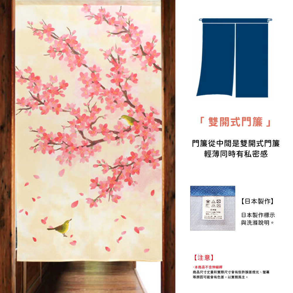 日本製【コスモ】長門簾《櫻花和鳥兒》