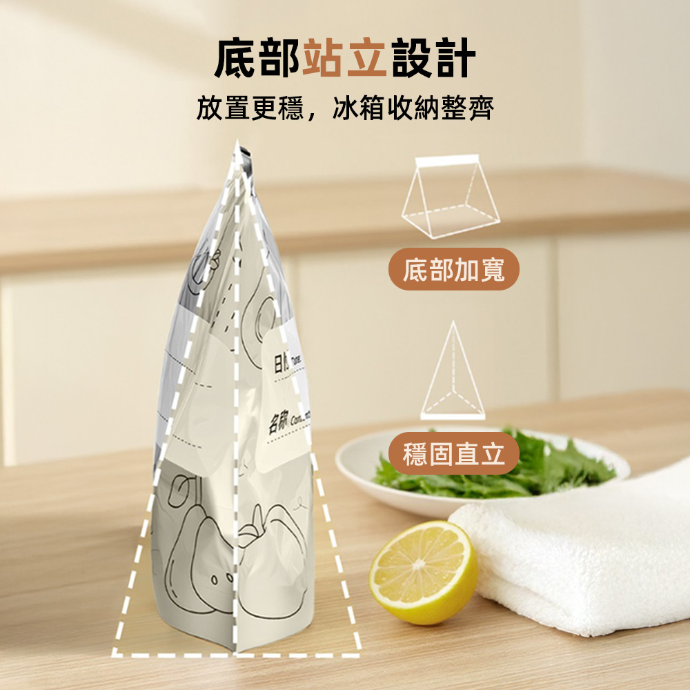 這款保鮮密封袋,拉鍊式設計輕鬆開合,內層隔氧隔光,有效延長保鮮時間。袋身可水洗重複使用,環保耐用,底部加寬能直立收納,放入冰箱更整齊。小號適合餅乾果乾,大號則能裝冷凍肉類或大量蔬果,一袋多用,日常保存更省心。