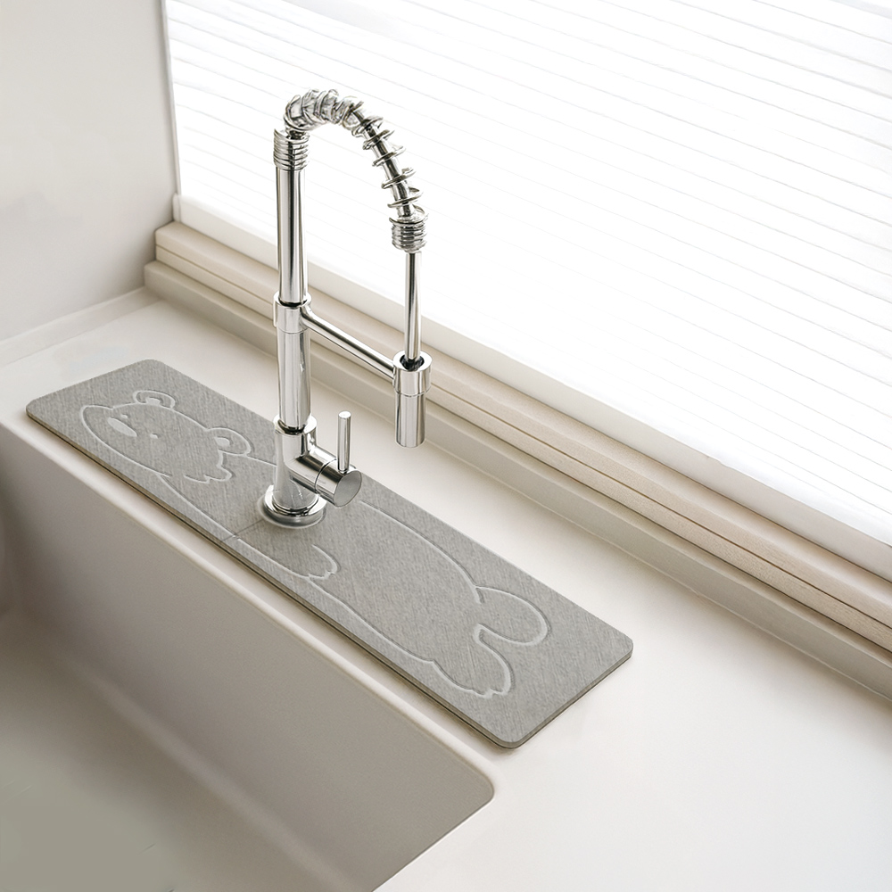 【上手家居】硅藻土水龍頭墊60*10cm 趴趴熊60x10cm(吸水墊/廚房吸水墊/珪藻土/流理台墊)