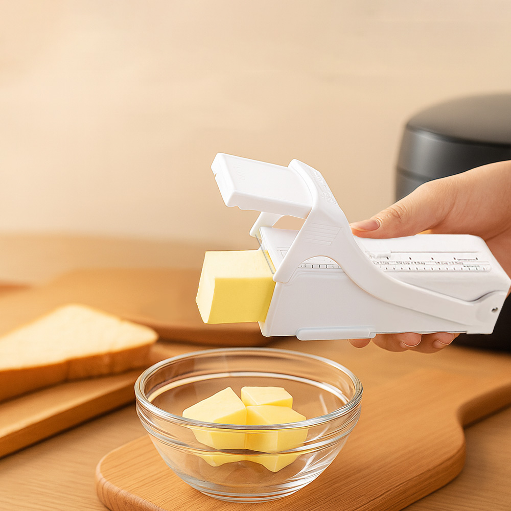 專為烘焙與料理設計的單手奶油切割器,透明刻度設計可精準掌握使用量,輕鬆切出整齊份量。切完可直接蓋上放入冰箱保存,衛生又便利。底部可翻開拆洗,清潔無死角。適用100g奶油尺寸,體積小巧不佔空間,是烘焙與廚房收納的好幫手。