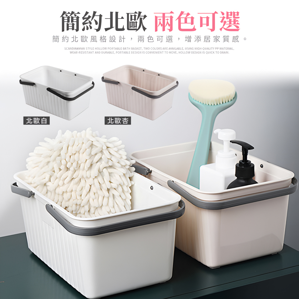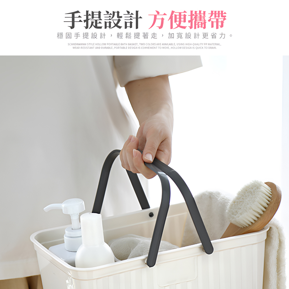 【上手家居】北歐瀝水提沐浴籃 北歐白(沐浴籃/收納籃/置物籃/手提籃/籃子/浴室收納/手提籃/手提洗澡籃)