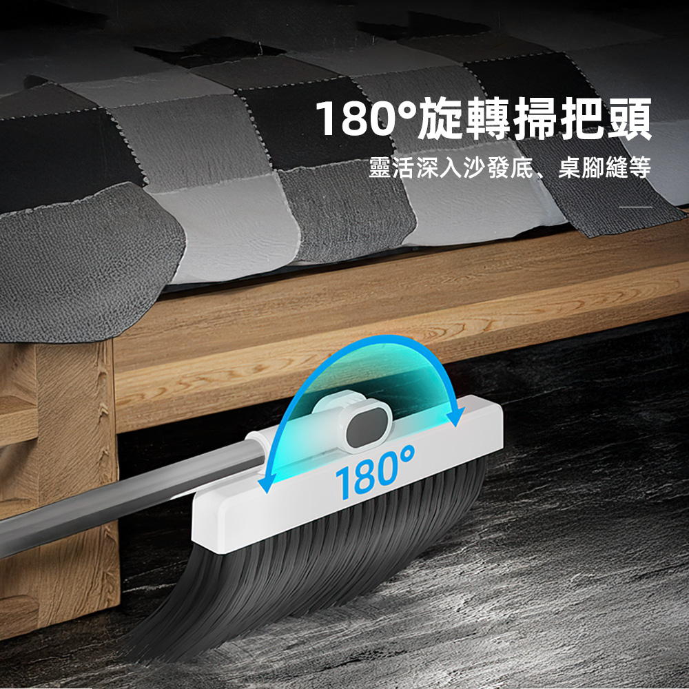這款四合一折疊掃把組,把掃把、畚箕、刮水器與地板刷合而為一。可乾可濕使用,靈活折疊收納不佔空間,還能180°旋轉深入沙發底、桌腳縫。濃密刷毛搭配齒梳設計,灰塵、毛髮一掃即淨,居家清潔更輕鬆。
