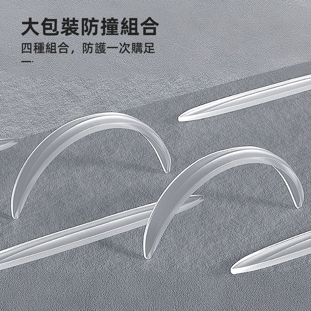 這組透明汽車防撞條套組,針對車門邊緣、角落、後照鏡與前後保險桿等高風險區域,完整配置不同尺寸防護貼。一撕即可黏貼,柔韌材質能貼合車身曲線,日常停車、上下車時多一層緩衝,讓刮傷與碰撞風險降到最低。