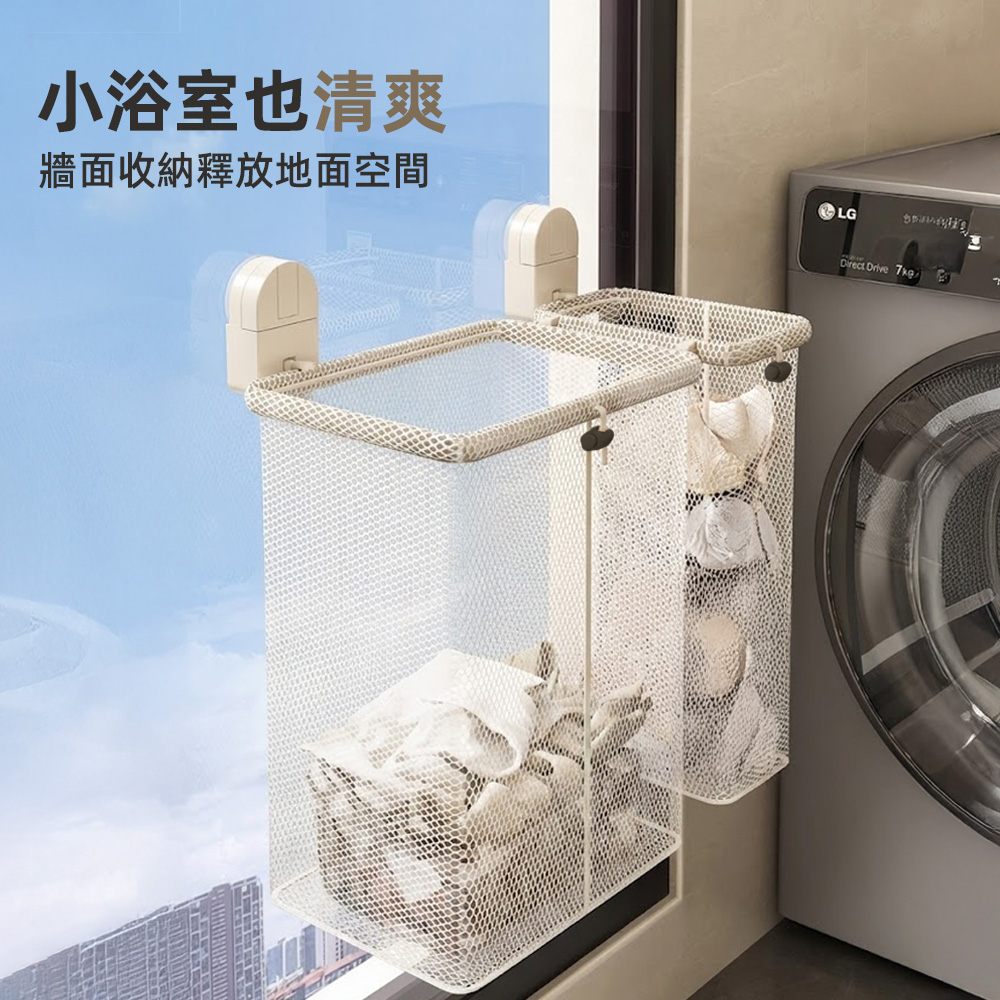 這款吸盤分格洗衣籃可直接吸附牆面使用,不需鑽孔、不傷牆面,將衣服與內衣褲分開收納,保持通風透氣,讓小浴室也能維持整齊清爽。
