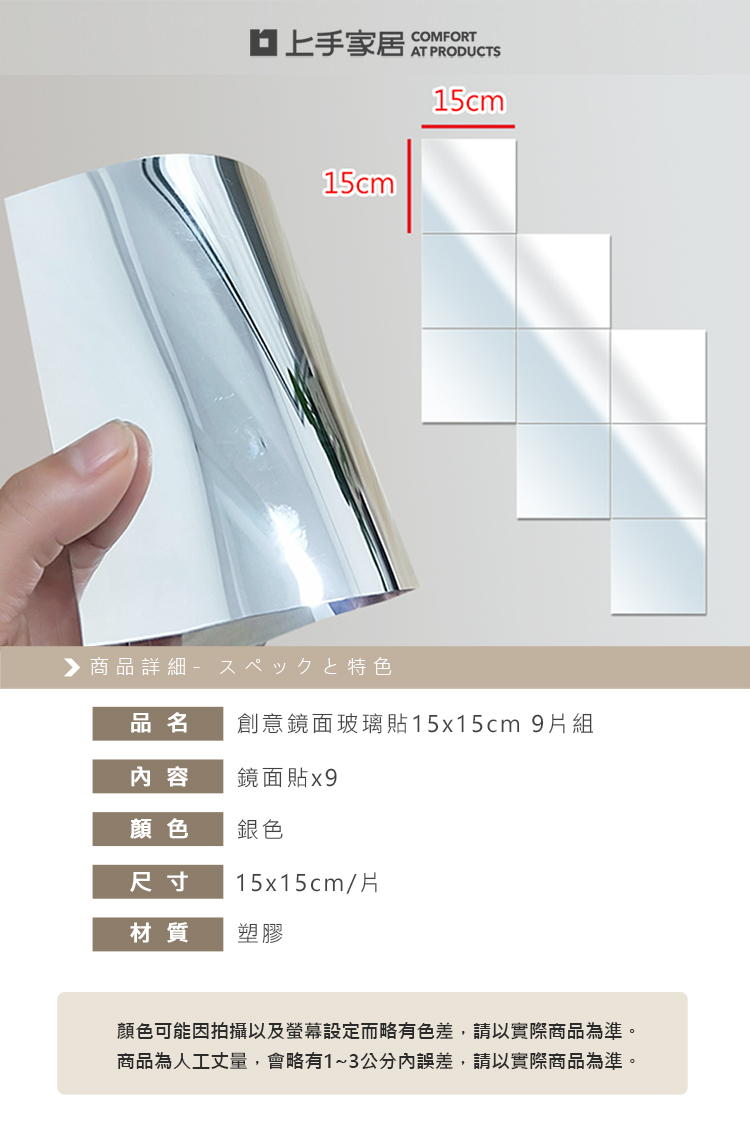 【上手家居】玻璃鏡子貼 9片組(鏡子/化妝鏡/穿衣鏡/鏡子貼/鏡子全身/軟鏡子/連身鏡/立鏡/鏡面貼/衛浴鏡子/鏡貼)