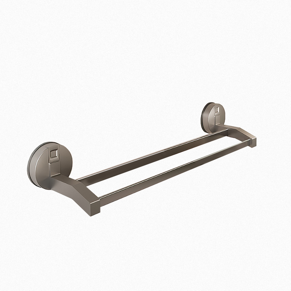 【上手家居】吸盤雙桿毛巾架-槍灰色(毛巾掛架/浴巾架/浴室毛巾架/毛巾桿)