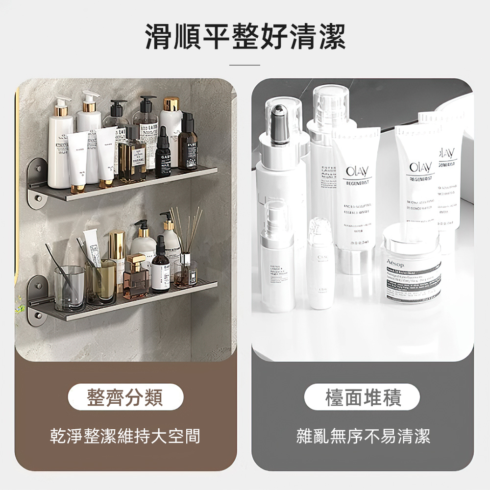 這款鏡前收納架安裝在視線平行區,動線順手、取用直覺,瓶瓶罐罐分類整齊排開,不再佔據檯面空間。免打孔設計適合租屋族,鋁合金材質簡約有型,讓浴室保持整潔又有質感。