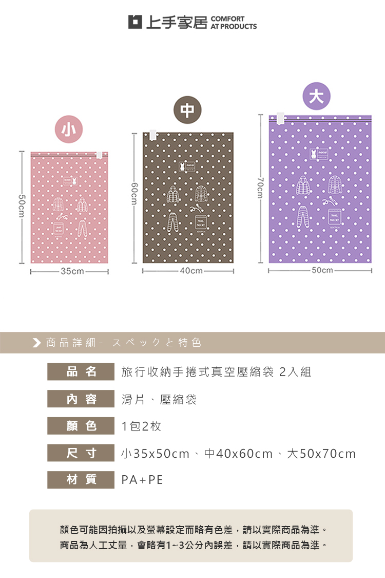【上手家居】旅行壓縮袋-小號 2入組(真空壓縮袋/真空收納袋/衣服壓縮袋/衣物壓縮袋/手捲壓縮袋/手卷壓縮袋)