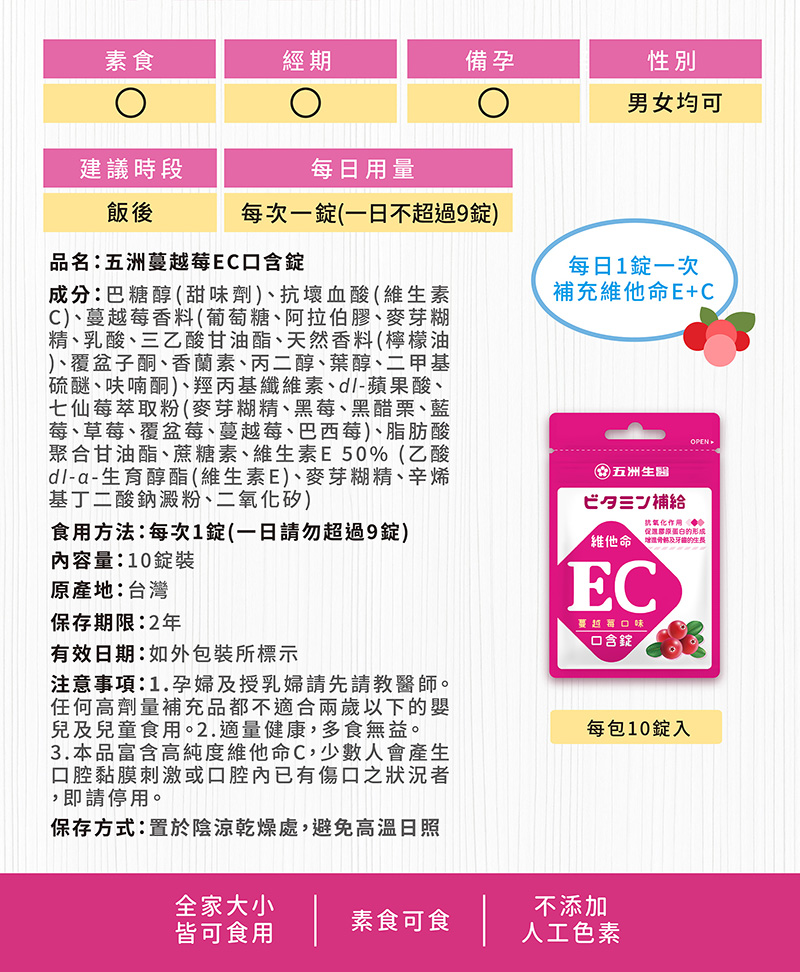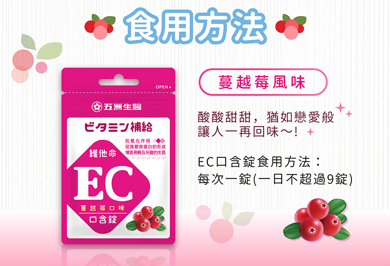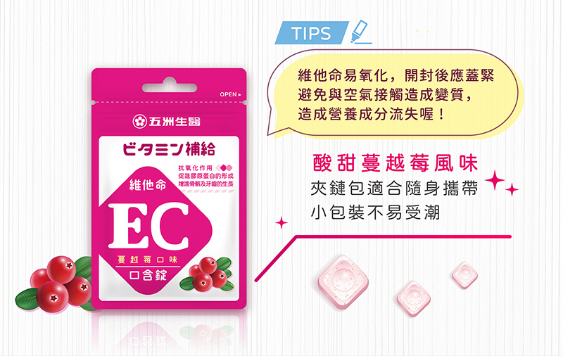 【五洲生醫】蔓越莓維他命EC口含錠(10錠/12包入)