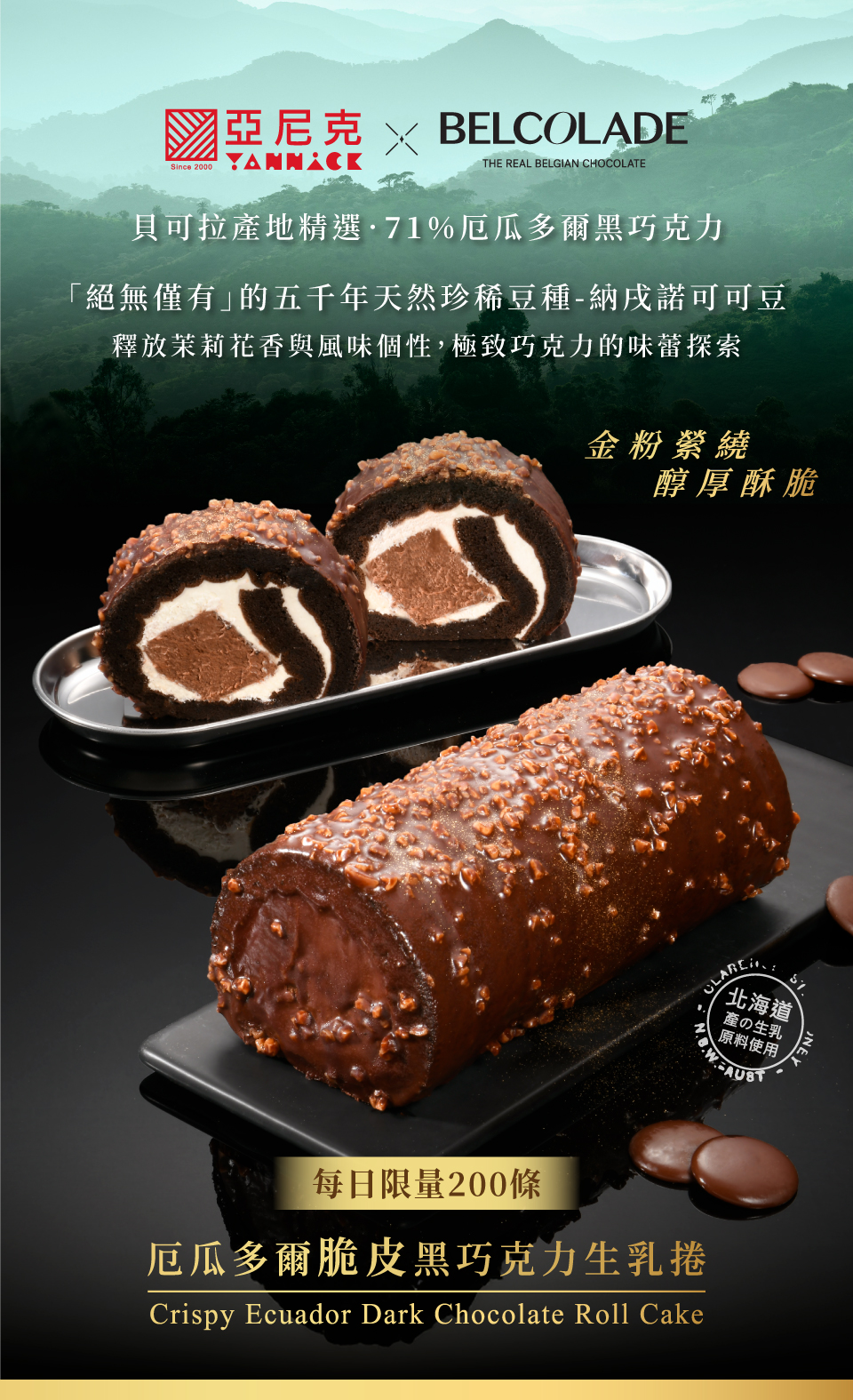 【亞尼克菓子工房】厄瓜多爾脆皮黑巧克力生乳捲 18CM/條(5個工作日出貨)