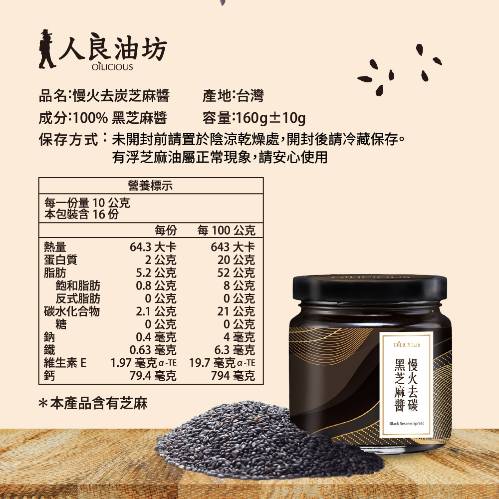 [人良油坊]慢火去炭黑芝麻醬160g