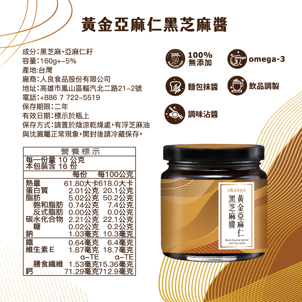 [人良油坊]黃金亞麻仁黑芝麻醬160g