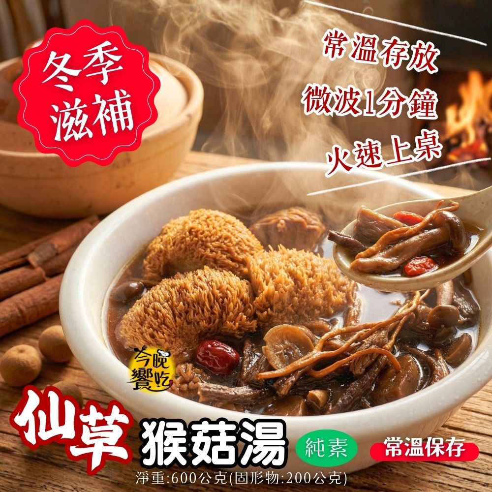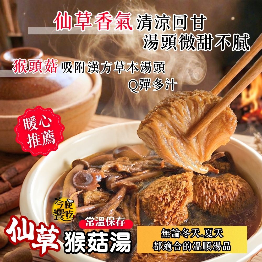 常溫湯品 火鍋湯底 料理湯底 團購夯品 純素猴頭菇湯底600g(固形物200g)(仙草/四神)[口味任選3包免運] 蔬食友善