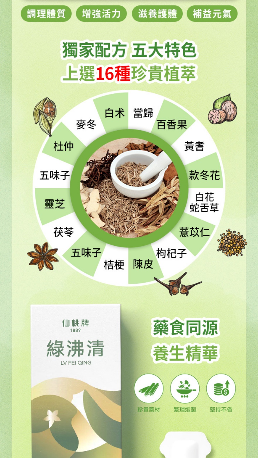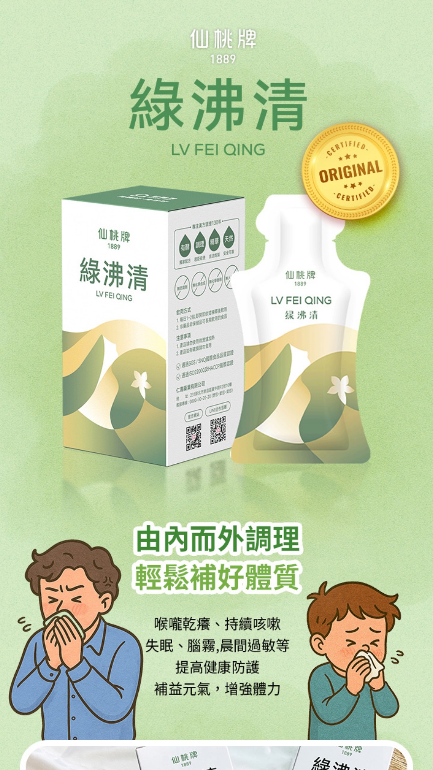 ❤️【仙桃牌】綠沸清,針對大人小孩氣虛體弱、病後反覆易感等健康需求而設計,是現代人在忙碌生活中也能簡單輕鬆地調理體質、增進健康。