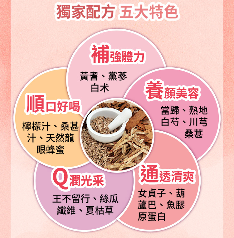 針對女性多功能精華飲系列,專為現代人養身需求設計。