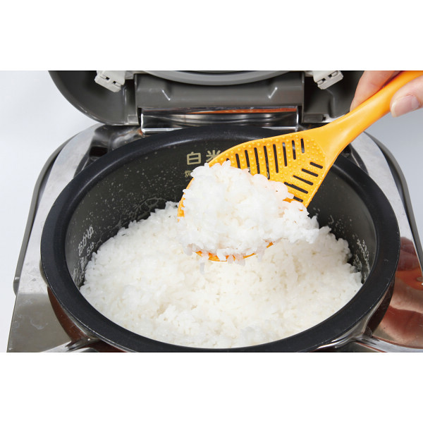 洗米時可用它搓米再瀝水,減少您碰到冷冰冰的水,如圖所示慢融味增塊時可用,煮出美味的味增湯,如圖所示可勺熱騰騰的白飯,如圖所示可直接立在鍋蓋上,避免與桌面細菌直接接觸,如圖所示以上如此貼心設計具多樣功能性,顛覆了傳統飯匙只能用來勺飯,此飯匙已高溫殺菌過。注意事項:請勿長時間把飯匙放入鍋中和火源處旁。