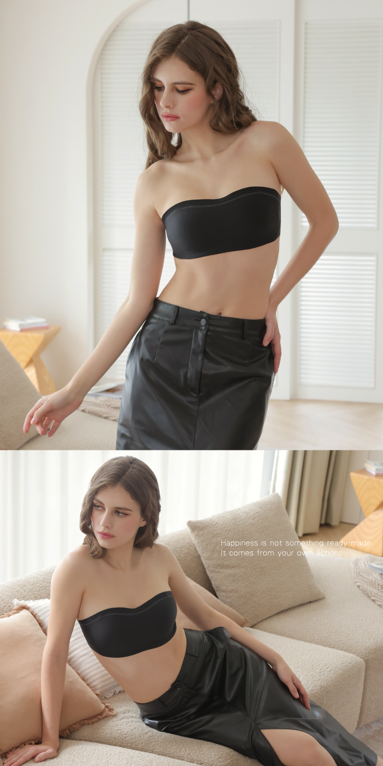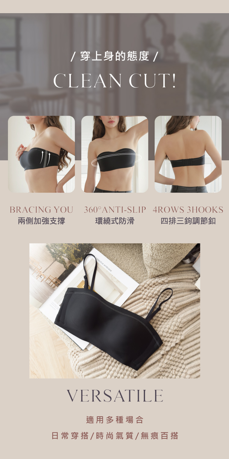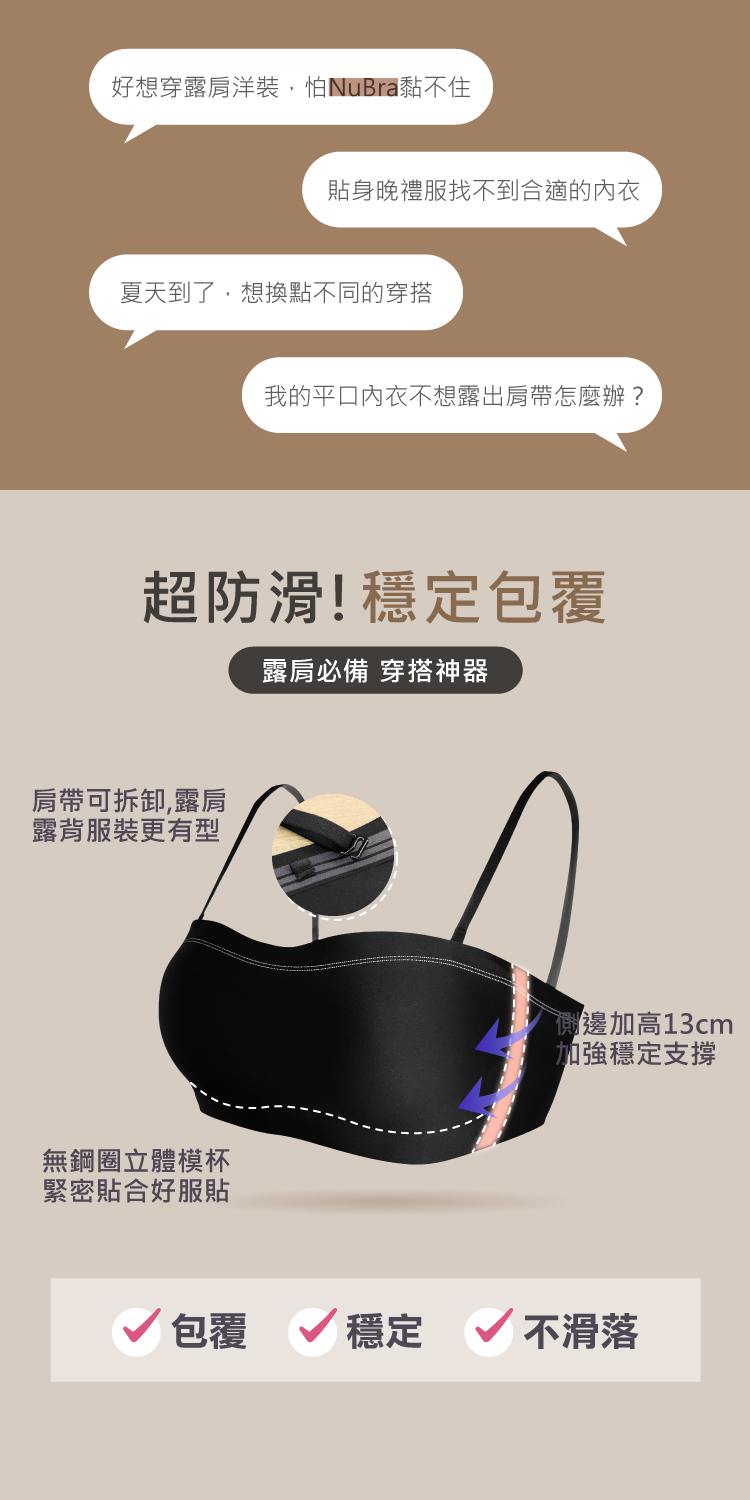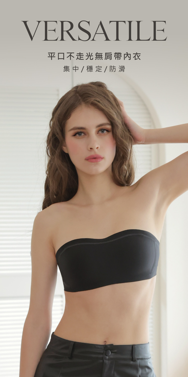 【伊柔 EVEROY】輕穩肌密 防滑穩定平口無肩帶無鋼圈M-XL內衣 米色 黑色 W052