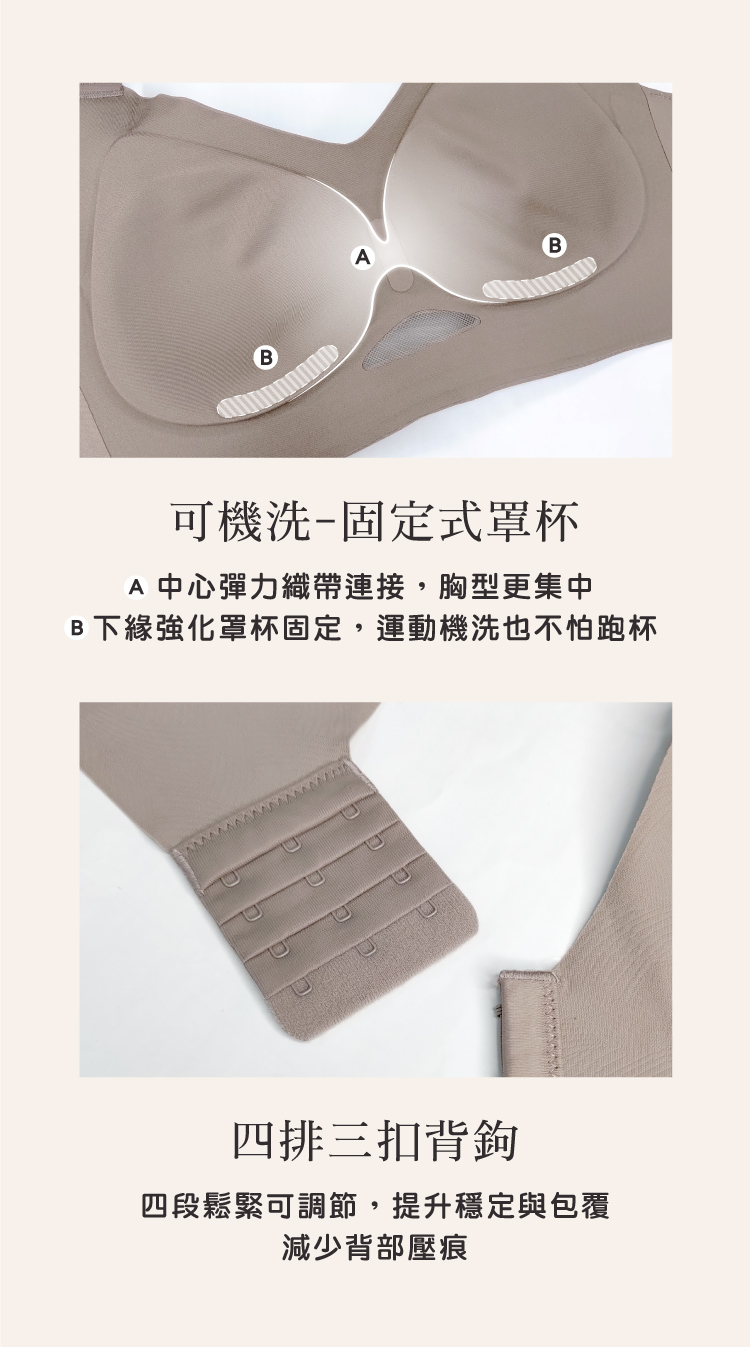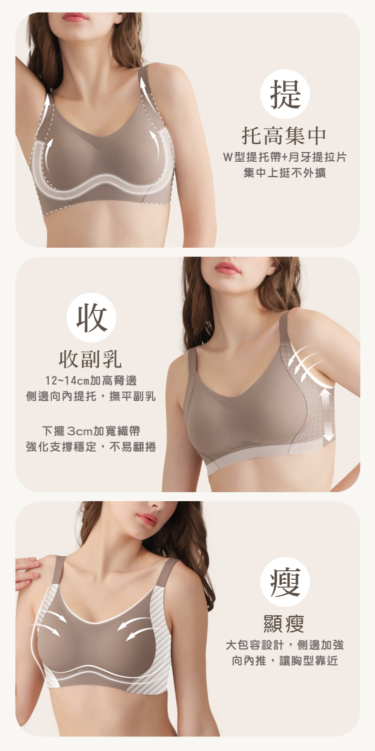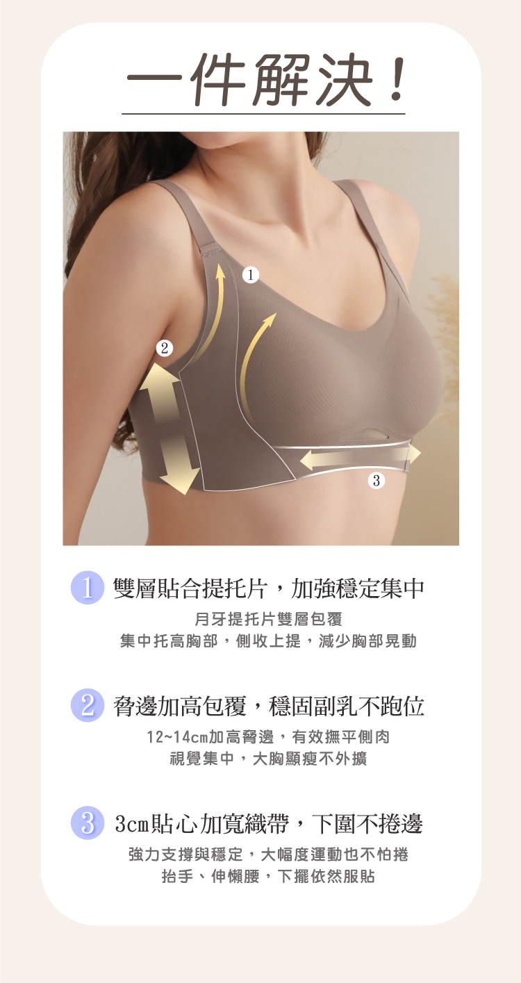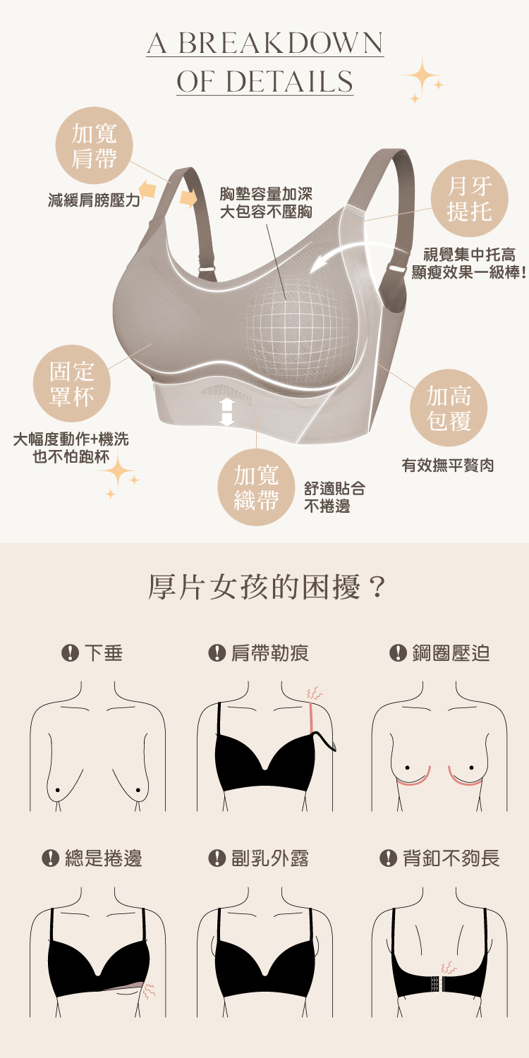 加高側片+寬肩帶:大胸也顯瘦,副乳包覆穩定、久穿不壓肩