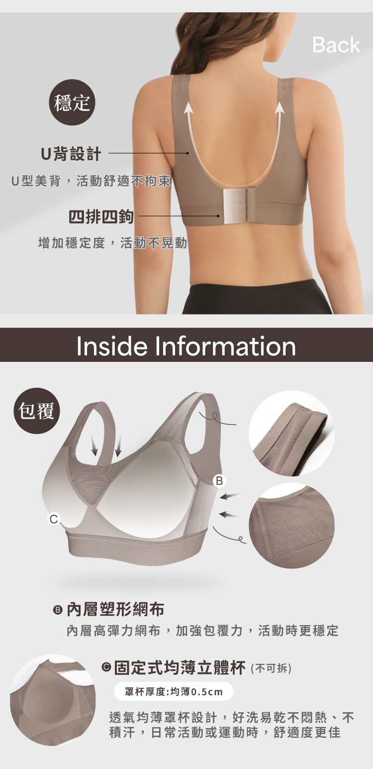 四排四鉤+美背設計|服貼不捲邊,活動自在零束縛