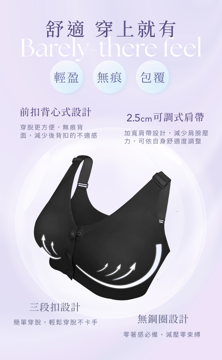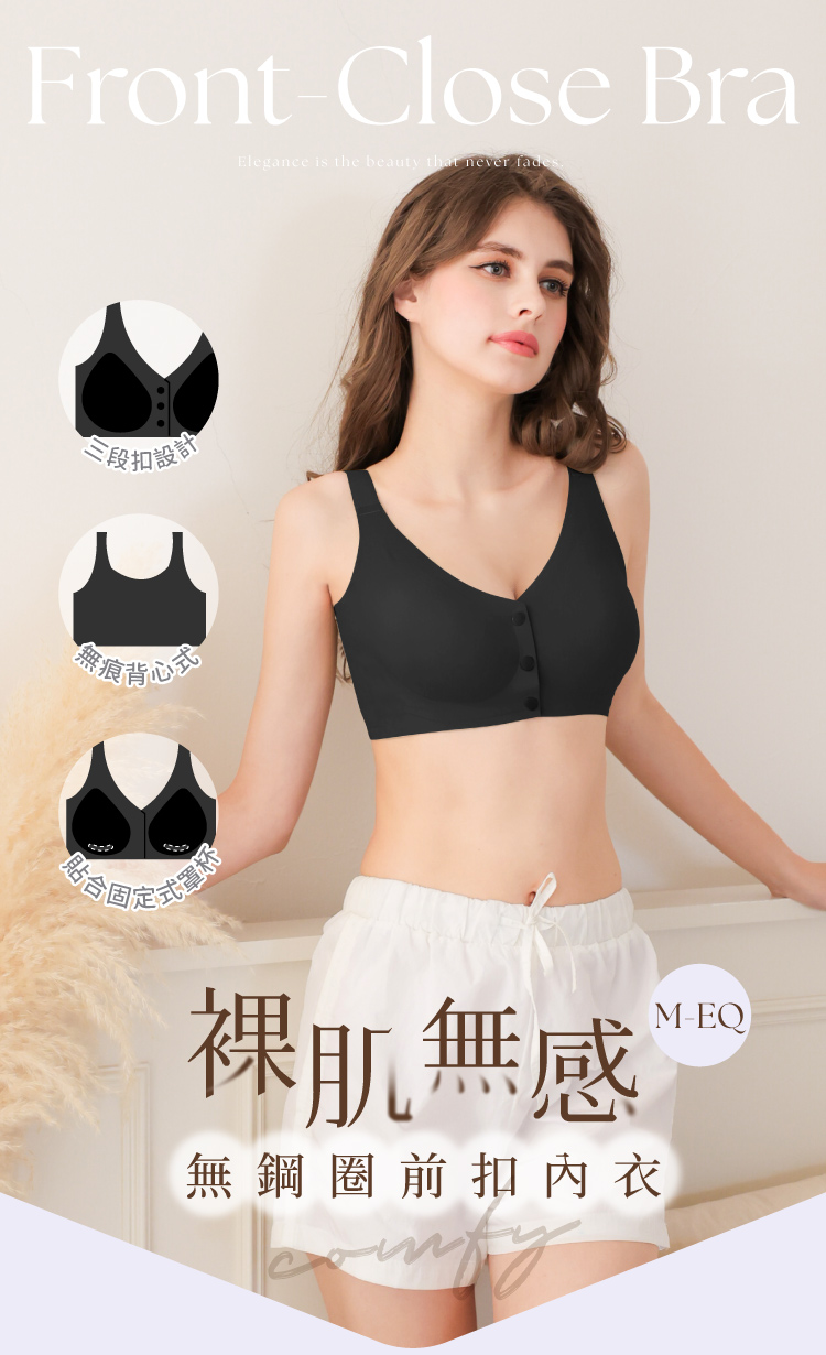 【伊柔 EVEROY】 裸肌無感無鋼圈前扣哺乳內衣 M-3XL(EQ)|無痕包覆.加大尺碼 W031-63 百搭黑