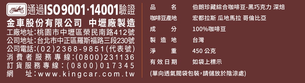 伯朗珍藏綜合咖啡豆-黑巧克力深焙450g