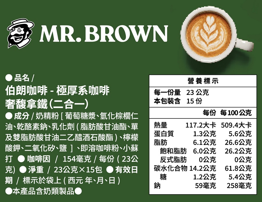 伯朗咖啡極厚奢馥拿鐵二合一 23g x15