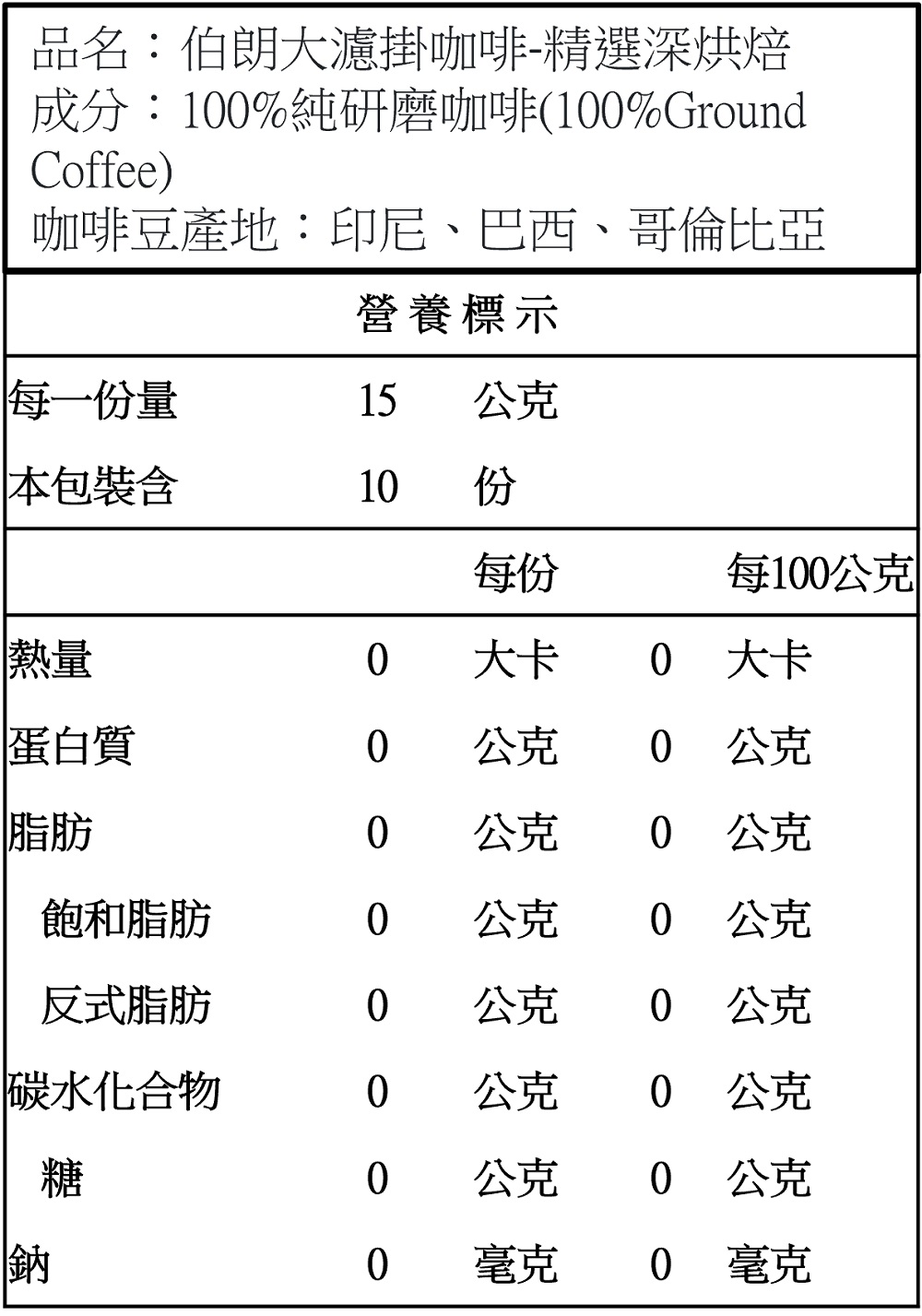 ◎品牌:伯朗 ◎規格: 15g克 x 10 x 1Box盒